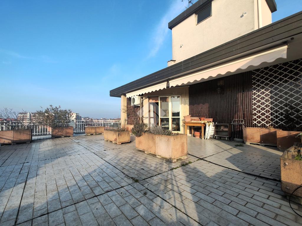 OPERA - In contesto signorile nel cuore del paese, proponiamo in vendita in esclusiva attico di circa 150mq con terrazzo al piano dal quale si possono ammirare ampie vedute e godere di momenti piacevoli da passare in famiglia e con gli amici in completa tranquillità. La soluzione è composta da ingresso nel disimpegno che collega a destra la cucina abitabile con accesso al balcone privato, a sinistra troviamo il soggiorno doppio perfetto sia per i momenti di convivialità, sia per pranzi e cene con tanti ospiti. Dalla zona giorno, si accede al terrazzo al piano di circa 115 mq. Il disimpegno conduce alla zona notte, ben distribuita, composta dalle due ampie camere matrimoniali dalle quali è possibile accedere al secondo balcone comunicante. I doppi servizi finestrati si completano uno con la vasca da bagno e l'altro con la doccia. Completa la soluzione abitativa un ampio ripostiglio ideale per tutti gli accessori di casa. Questa abitazione si presta ad essere trasformata in un quattro locali con dehors con una serra bioclimatica sul terrazzo. Naturalmente per avere tutto ciò occorre prevedere una ristrutturazione con progetto che includa la terza camera da letto, la cabina armadio ed eventualmente il terzo servizio. L'appartamento è dotato di aria condizionata e di tapparelle motorizzate per un maggiore comfort. Sono stati deliberati i lavori per il rifacimento del terrazzo che inizieranno a breve. Al piano interrato sono presenti la cantina e il box di proprietà compresi nel prezzo. Vi invitiamo a contattarci per prenotare una visita guidata a questa soluzione ideale per chi cerca una casa ampia, sicura, luminosa e riservata senza rinunciare ai servizi che il paese offre.