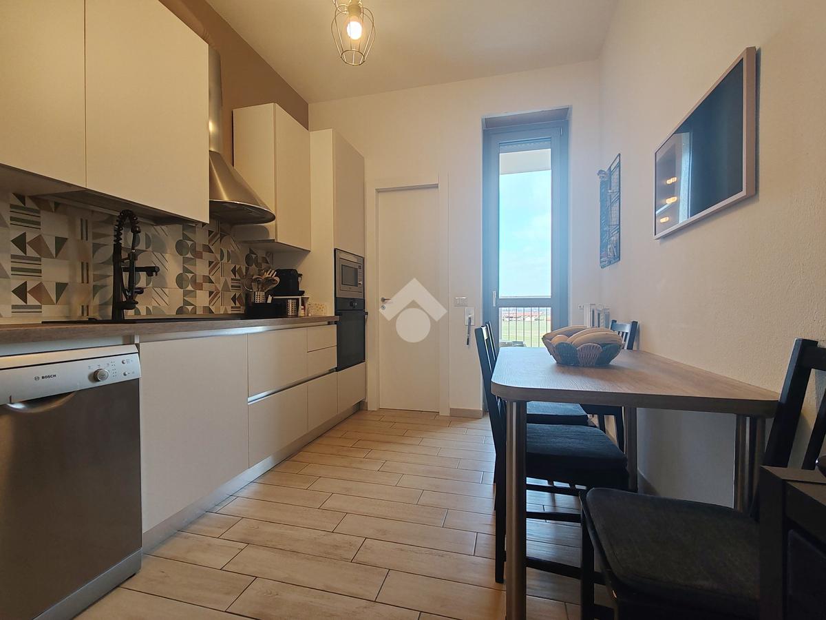 NOVERASCO - In contesto esclusivo immerso nel verde a due passi da Milano proponiamo in vendita in esclusiva abitazione al piano alto da cui si può godere una vista panoramica sullo skyline della città. Nelle vicinanze e raggiungibile anche a piedi c'è l'American School of Milan, il campo da golf Rovedine, piscina, campi da tennis, padel e calcetto, istituto Superiore Italo Calvino, scuole Materne ed Elementari fratelli Cervi, centro commerciale Sportng Mirasole e fermate dei mezzi pubblici. L'appartamento è stato completamente ristrutturato e si presenta con i doppi ingressi, entrambi con porta blindata, soggiorno ampio con terrazzino, cucina abitabile con lavanderia e balcone che comunica anche con la cameretta adiacente. La zona notte si completa con camera doppia, camera matrimoniale, doppi servizi di cui uno finestrato con doccia e l'altro con vasca. Ogni camera è dotata di cabina armadio, è presente un comodo ripostiglio vicino alla cucina e un altro nella zona notte. L'abitazione è dotata di climatizzazione, infissi in pvc triplo vetro, pavimenti in marmo in zona giorno e parquet in zona notte. L'edificio è stato interessato dai lavori per la riqualificazione energetica, a breve verrà prodotto il nuovo attestato di prestazione energetica. Sono compresi nel prezzo la cantina e il posto auto coperto. Ideale per nuclei familiari che cercano un'abitazione funzionale, completa e che non necessiti interventi di ristrutturazione. Vi invitiamo a contattarci per prenotare una visita a questo appartamento che vi farà sentire a vostro agio come un abito fatto su misura.